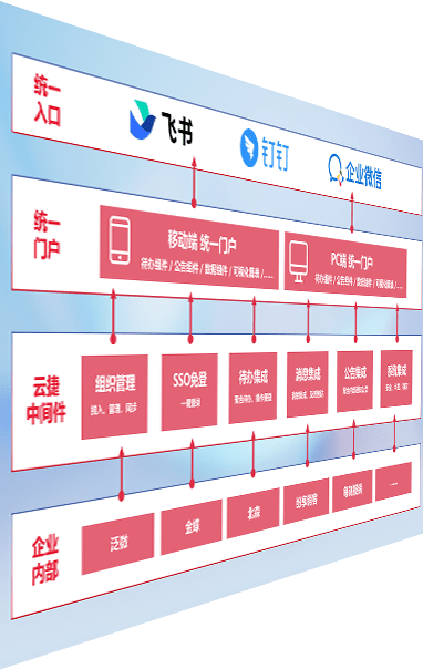 对协作平台提供支持服务,,,,支持企业应用与协作平台对接,,包含组织同步、、、、消息集成、、、待办集成等。。。。支持目前主流的协作平台:钉钉、、企微和飞书。。。。